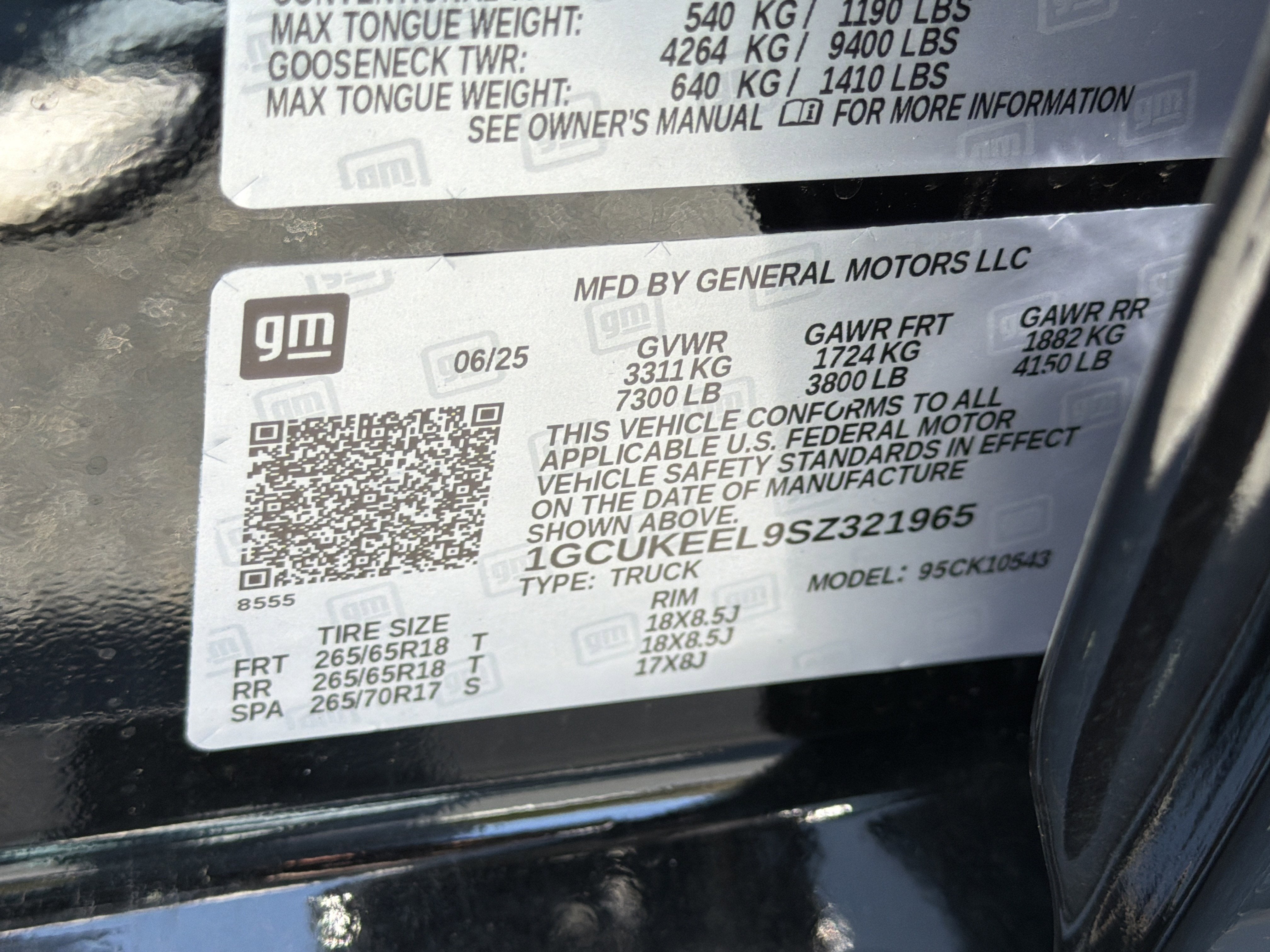- Front Tire Size: 265/65R18SL