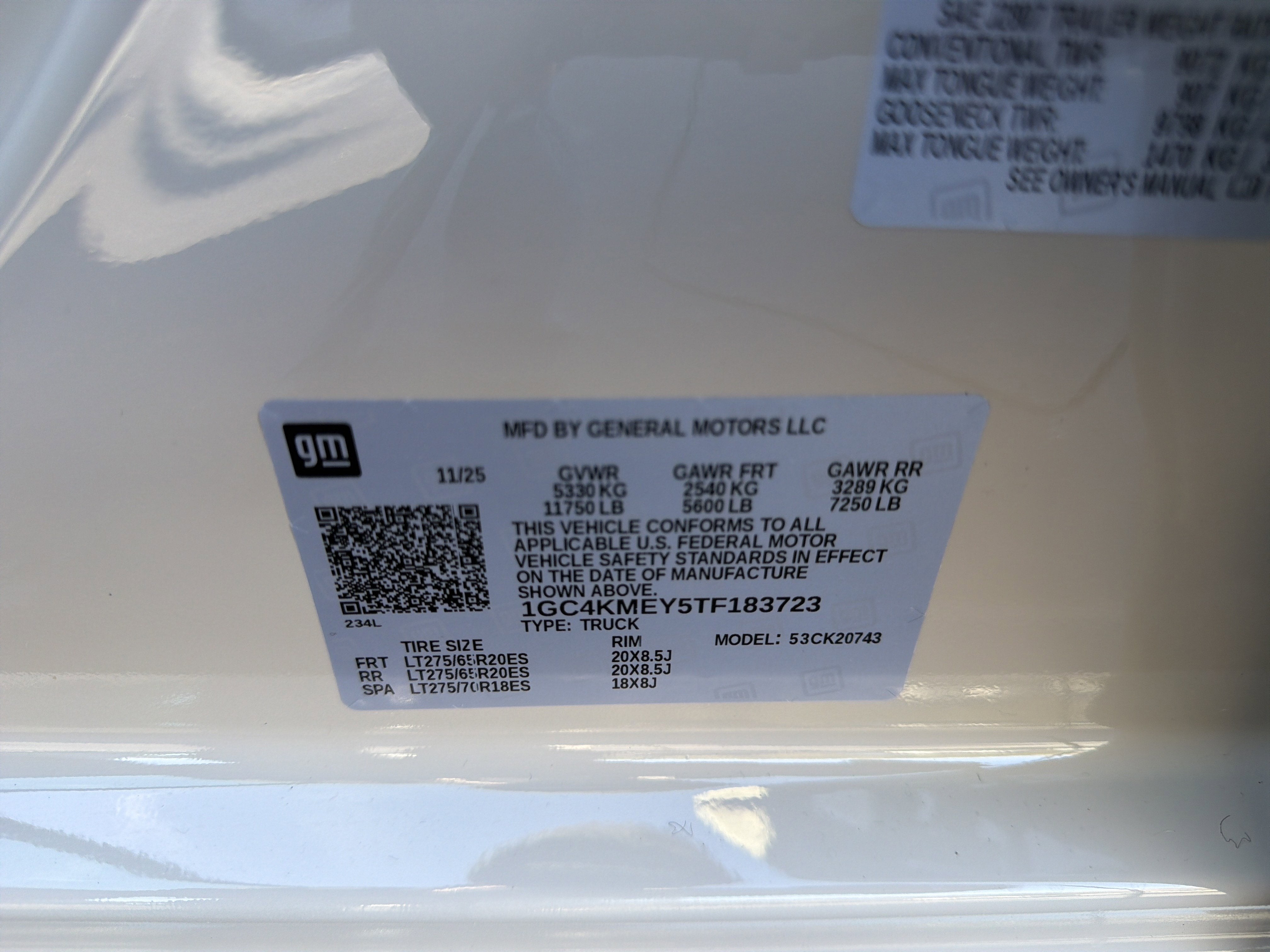 - Tires, LT275/65R20 all-terrain, blackwall