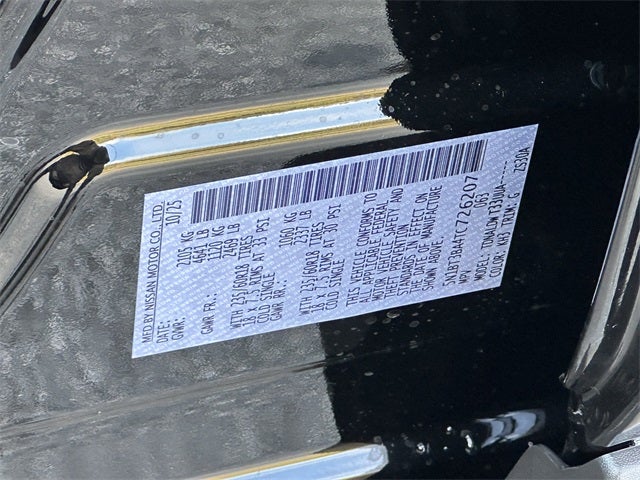 4-Wheel Disc Brakes, 6 Speakers, ABS brakes, Air Conditioning, Alloy wheels, AM/FM radio: Sirius, Apple CarPlay/Android Auto, Auto High-beam Headlights, Automatic temperature control, Black Splash Guards (Set of 4) (B92), Brake assist, Bumpers: body-color, Chrome Rear Bumper Protector, Delay-off headlights, Driver door bin, Driver vanity mirror, Dual front impact airbags, Dual front side impact airbags, Electronic Stability Control, Emergency communication system: NissanConnect Services, First Aid Kit, Floor Mats w/1-Piece Cargo Area Protector, Four wheel independent suspension, Front anti-roll bar, Front Bucket Seats, Front Center Armrest, Front dual zone A/C, Front reading lights, Fully automatic headlights, Heated door mirrors, Illuminated entry, Knee airbag, Low tire pressure warning, Occupant sensing airbag, Outside temperature display, Overhead airbag, Overhead console, Panic alarm, Passenger door bin, Passenger vanity mirror, Power door mirrors, Power driver seat, Power Liftgate, Power steering, Power windows, Prima-Tex Leatherette Seat Trim, Radio data system, Radio: AM/FM NissanConnect, Rear anti-roll bar, Rear seat center armrest, Rear side impact airbag, Rear window defroster, Rear window wiper, Remote keyless entry, Speed control, Speed-sensing steering, Speed-Sensitive Wipers, Split folding rear seat, Spoiler, Steering wheel mounted audio controls, Tachometer, Telescoping steering wheel, Tilt steering wheel, Traction control, Trip computer, Variably intermittent wipers. 4-Wheel Disc Brakes, 6 Speakers, ABS brakes, Air Conditioning, Alloy wheels, AM/FM radio: Sirius, Apple CarPlay/Android Auto, Auto High-beam Headlights, Automatic temperature control, Black Splash Guards (Set of 4) (B92), Brake assist, Bumpers: body-color, Chrome Rear Bumper Protector, Delay-off headlights, Driver door bin, Driver vanity mirror, Dual front impact airbags, Dual front side impact airbags, Electronic Stability Control, Emergency communication system: NissanConnect Services, First Aid Kit, Floor Mats w/1-Piece Cargo Area Protector, Four wheel independent suspension, Front anti-roll bar, Front Bucket Seats, Front Center Armrest, Front dual zone A/C, Front reading lights, Fully automatic headlights, Heated door mirrors, Illuminated entry, Knee airbag, Low tire pressure warning, Occupant sensing airbag, Outside temperature display, Overhead airbag, Overhead console, Panic alarm, Passenger door bin, Passenger vanity mirror, Power door mirrors, Power driver seat, Power Liftgate, Power steering, Power windows, Prima-Tex Leatherette Seat Trim, Radio data system, Radio: AM/FM NissanConnect, Rear anti-roll bar, Rear seat center armrest, Rear side impact airbag, Rear window defroster, Rear window wiper, Remote keyless entry, Speed control, Speed-sensing steering, Speed-Sensitive Wipers, Split folding rear seat, Spoiler, Steering wheel mounted audio controls, Tachometer, Telescoping steering wheel, Tilt steering wheel, Traction control, Trip computer, and Variably intermittent wipers.
