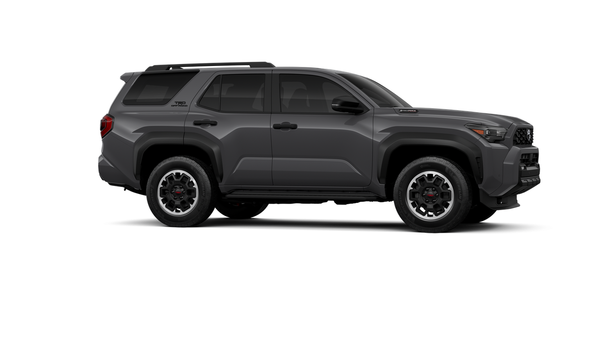 - Black honeycomb-style grille, mirror caps, door handles and overfenders; color-keyed rear spoiler; black "TRD OFF ROAD" and "4RUNNER" badges