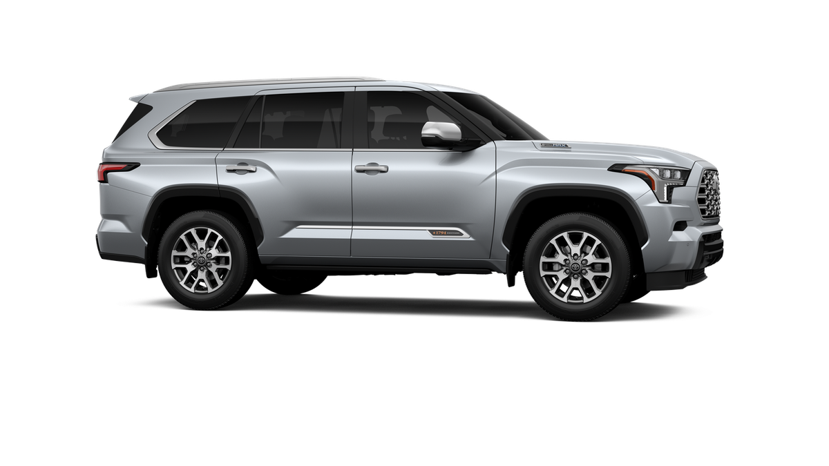 - Bright-chrome "SEQUOIA" rear door badge, chrome "1794 EDITION" door badge and garnish, door handles, window molding and mirror caps; color-keyed tailgate spoiler; black-painted overfenders