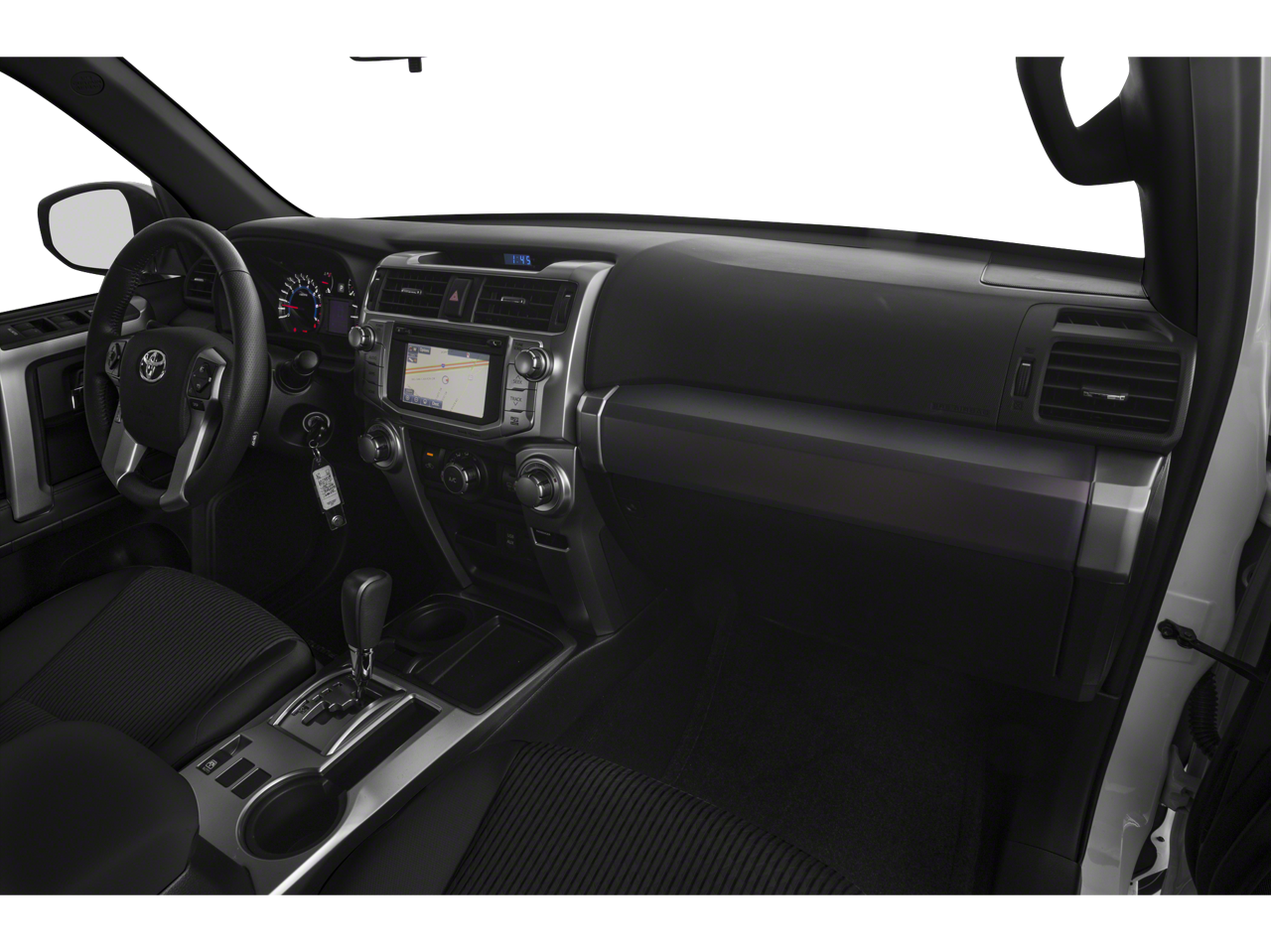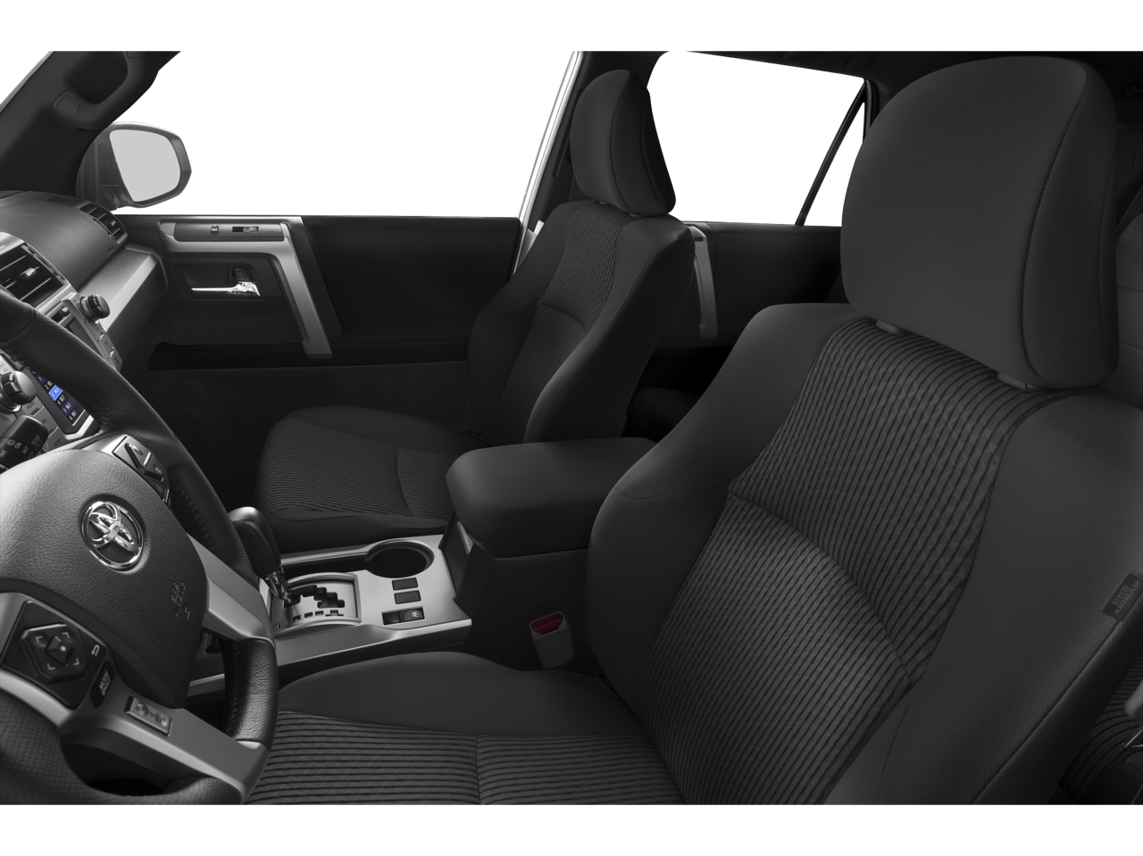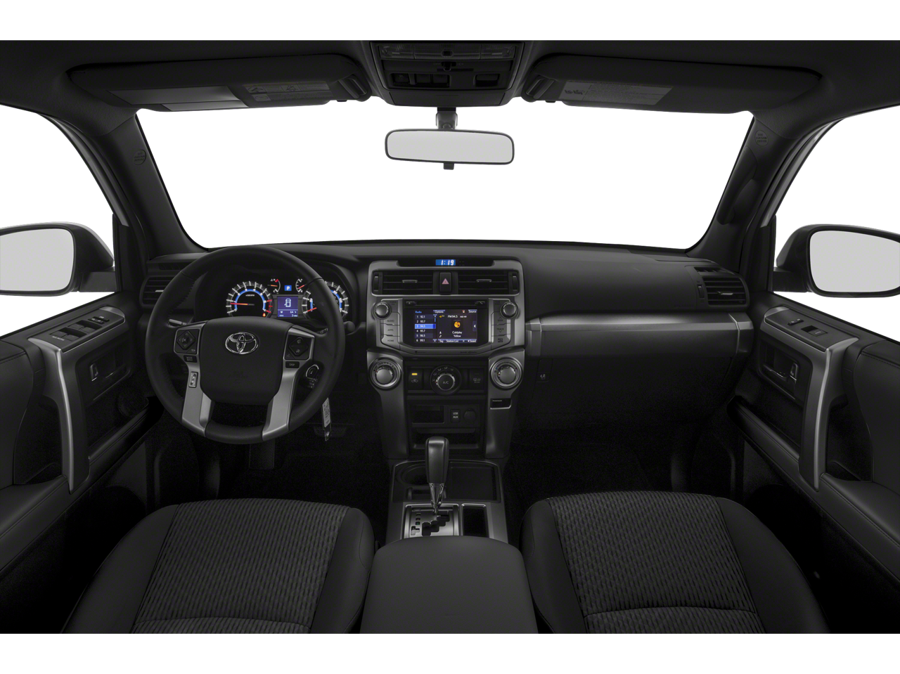 Midnight Black Metallic 2019 Toyota 4Runner SR5 RWD 5-Speed Automatic with Overdrive 4.0L V6 SMPI DOHC Graphite Cloth. This vehicle comes with the following features and options : Graphite Cloth, 17 x 7.0 6-Spoke Alloy Wheels, 3.727 Axle Ratio, 4-Wheel Disc Brakes, 8 Speakers, ABS brakes, Air Conditioning, Alloy wheels, AM/FM radio: SiriusXM, Anti-whiplash front head restraints, Brake assist, Bumpers: body-color, CD player, Driver door bin, Driver vanity mirror, Dual front impact airbags, Dual front side impact airbags, Electronic Stability Control, Emergency communication system: Safety Connect, Exterior Parking Camera Rear, Front anti-roll bar, Front Bucket Seats, Front Center Armrest, Front fog lights, Front reading lights, Front wheel independent suspension, Heated door mirrors, Illuminated entry, Knee airbag, Leather Shift Knob, Leather steering wheel, Low Fabric Seat Trim, Low tire pressure warning, Occupant sensing airbag, Outside temperature display, Overhead airbag, Overhead console, Panic alarm, Passenger door bin, Passenger vanity mirror, Power door mirrors, Power driver seat, Power steering, Power windows, Radio: Entune Audio Plus, Radio: Entune Premium Audio with Navigation, Rear anti-roll bar, Rear seat center armrest, Rear window defroster, Rear window wiper, Remote keyless entry, Roof rack: rails only, Security system, Speed control, Speed-sensing steering, Split folding rear seat, Spoiler, Steering wheel mounted audio controls, Tachometer, Telescoping steering wheel, Tilt steering wheel, Traction control, Trip computer, and Variably intermittent wipers.