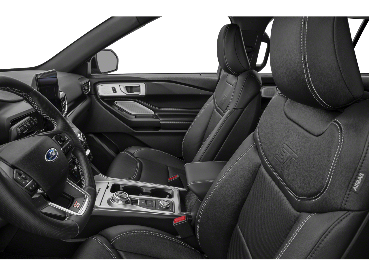 White 2020 Ford Explorer ST 4WD 10-Speed Automatic 3.0L EcoBoost V6 4WD. This vehicle comes with the following features and options : Equipment Group 400A, Premium Technology Package (10.1 LCD Capacitive Portrait Touchscreen, 2 Additional Speakers, and Leather Htd/Ventilated Sport Captain's Chairs), 4WD, 12 Speakers, 20 Machined Aluminum w/Painted Pockets Wheels, 3.58 Non-Limited-Slip Rear Axle Ratio, 3rd row seats: bench, 4-Wheel Disc Brakes, ABS brakes, Air Conditioning, Alloy wheels, AM/FM radio: SiriusXM, Auto High-beam Headlights, Auto-dimming door mirrors, Auto-dimming Rear-View mirror, Automatic temperature control, Brake assist, Bumpers: body-color, Compass, Delay-off headlights, Driver door bin, Driver vanity mirror, Dual front impact airbags, Dual front side impact airbags, Electronic Stability Control, Emergency communication system: SYNC 3 911 Assist, Exterior Parking Camera Rear, FordPass Connect, Four wheel independent suspension, Front & Second Row Floor Liners, Front anti-roll bar, Front Bucket Seats, Front Center Armrest, Front dual zone A/C, Front fog lights, Front reading lights, Fully automatic headlights, Garage door transmitter: HomeLink, Heated door mirrors, Heated front seats, Heated rear seats, Heated steering wheel, Illuminated entry, Knee airbag, Leather steering wheel, Low tire pressure warning, Memory seat, Navigation System, Occupant sensing airbag, Outside temperature display, Overhead airbag, Overhead console, Panic alarm, Passenger door bin, Passenger vanity mirror, Power door mirrors, Power driver seat, Power Liftgate, Power passenger seat, Power steering, Power windows, Radio data system, Radio: B&O Sound System by Bang & Olufsen, Rain sensing wipers, Rear air conditioning, Rear anti-roll bar, Rear reading lights, Rear window defroster, Rear window wiper, Remote keyless entry, Roof rack: rails only, Security system, Speed control, Speed-sensing steering, Speed-Sensitive Wipers, Split folding rear seat, Spoiler, Sport steering wheel, Steering wheel memory, Steering wheel mounted audio controls, SYNC 3 Communications & Entertainment System, SYNC 3/Apple CarPlay/Android Auto, Tachometer, Telescoping steering wheel, Tilt steering wheel, Traction control, Trip computer, Turn signal indicator mirrors, Twin Panel Moonroof, Variably intermittent wipers, Ventilated front seats, and Voice-Activated Touchscreen Navigation System.