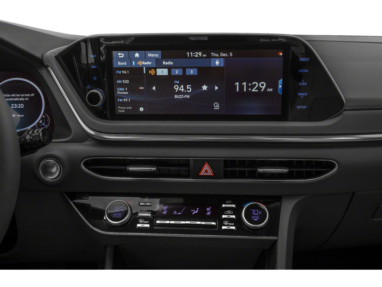 - Radio: AM/FM/MP3/HD/SiriusXM Display Audio w/Nav -inc: 10.25" color touchscreen, integrated Bluetooth®, Blue Link connected car system, Apple CarPlay, Android Auto, USB charge port and diversity antenna for navigation and premium audio