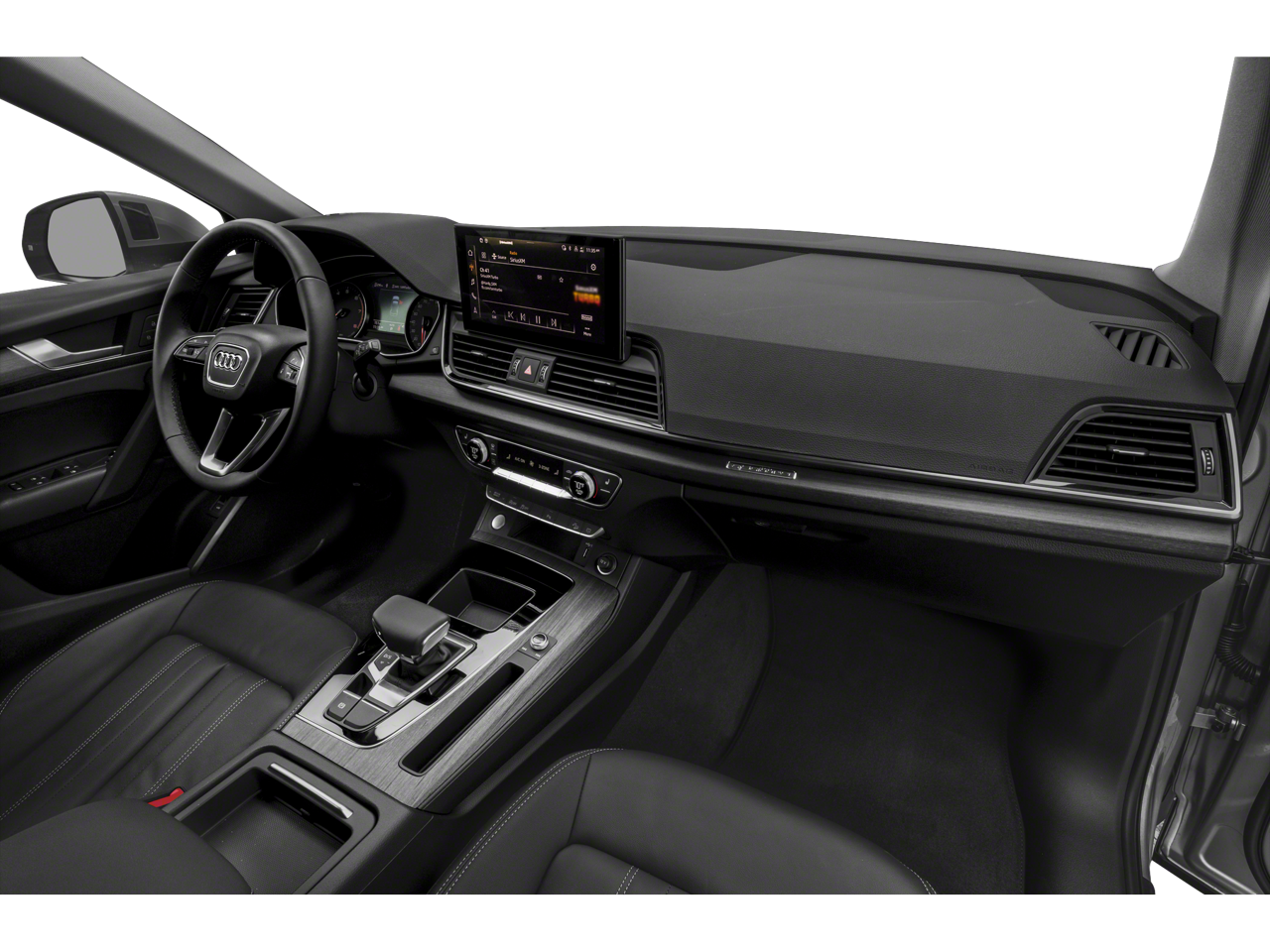 2021 Audi Q5 quattro quattro 7-Speed Automatic S tronic 2.0L Turbocharged Leather. This vehicle comes with the following features and options : Leather, 10 Speakers, 4-Wheel Disc Brakes, 5.302 Axle Ratio, ABS brakes, Air Conditioning, Alloy wheels, AM/FM radio, Auto High-beam Headlights, Auto-dimming Rear-View mirror, Automatic temperature control, Brake assist, Bumpers: body-color, Compass, Delay-off headlights, Driver door bin, Driver vanity mirror, Dual front impact airbags, Dual front side impact airbags, Electronic Stability Control, Emergency communication system: Audi connect CARE, Exterior Parking Camera Rear, Four wheel independent suspension, Front anti-roll bar, Front Bucket Seats, Front Center Armrest, Front dual zone A/C, Front fog lights, Front reading lights, Garage door transmitter: HomeLink, Genuine wood console insert, Genuine wood dashboard insert, Genuine wood door panel insert, Heated 8-Way Power Front Bucket Seats, Heated door mirrors, Heated front seats, Illuminated entry, Leather Seating Surfaces, Leather Shift Knob, Low tire pressure warning, Occupant sensing airbag, Outside temperature display, Overhead airbag, Overhead console, Panic alarm, Passenger door bin, Passenger vanity mirror, Power door mirrors, Power driver seat, Power Liftgate, Power passenger seat, Power steering, Power windows, Radio data system, Radio: Audi Sound System, Rain sensing wipers, Rear air conditioning, Rear anti-roll bar, Rear fog lights, Rear reading lights, Rear seat center armrest, Rear window defroster, Rear window wiper, Remote keyless entry, Roof rack, Security system, Speed control, Speed-sensing steering, Speed-Sensitive Wipers, Split folding rear seat, Spoiler, Steering wheel mounted audio controls, Tachometer, Telescoping steering wheel, Tilt steering wheel, Traction control, Trip computer, Turn signal indicator mirrors, Variably intermittent wipers, and Wheels: 18 5-Arm-Star Design.