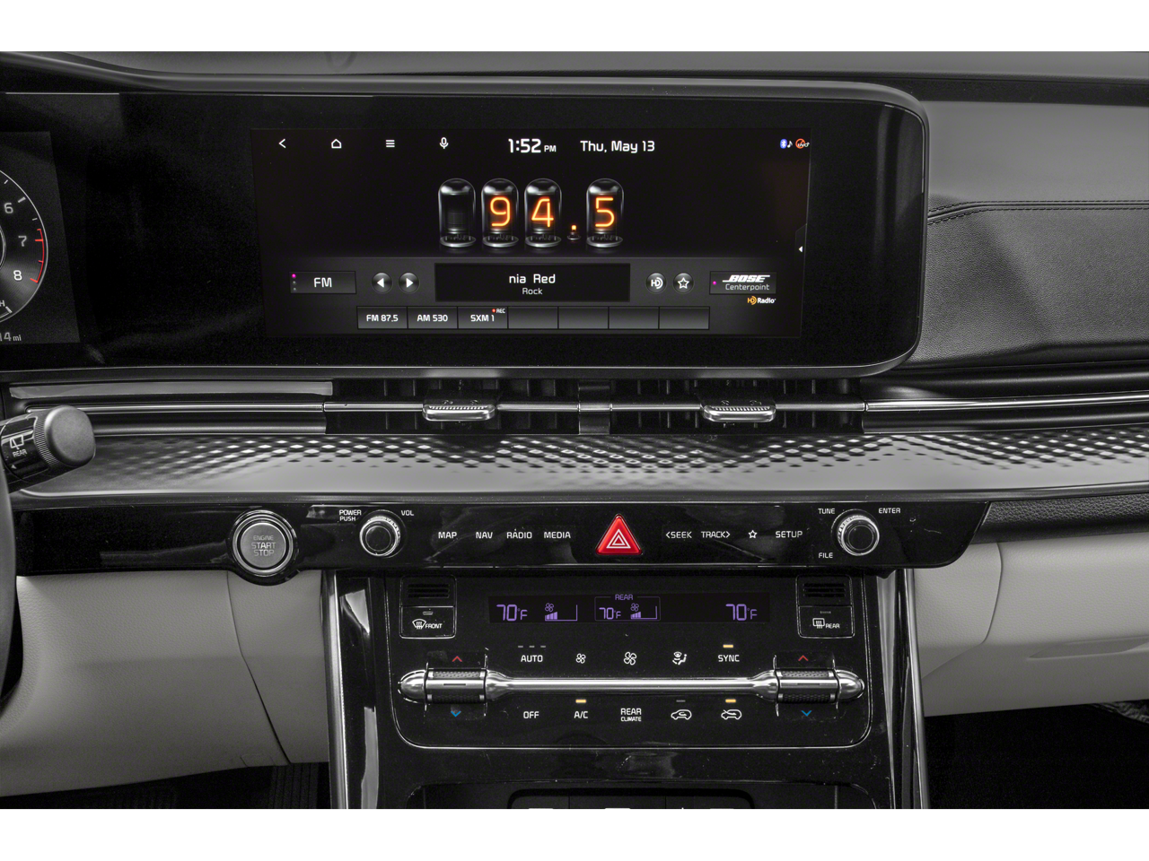 - Radio: AM/FM/HD Audio System -inc: 12 speakers Bose premium audio (exterior amp, and subwoofer), 12.3" AVN navigation system w/Android Auto and Apple CarPlay, SiriusXM, Bluetooth®, modem, surround view monitor, 1 media port, 8 USB ports and 15-watt wireless phone charger