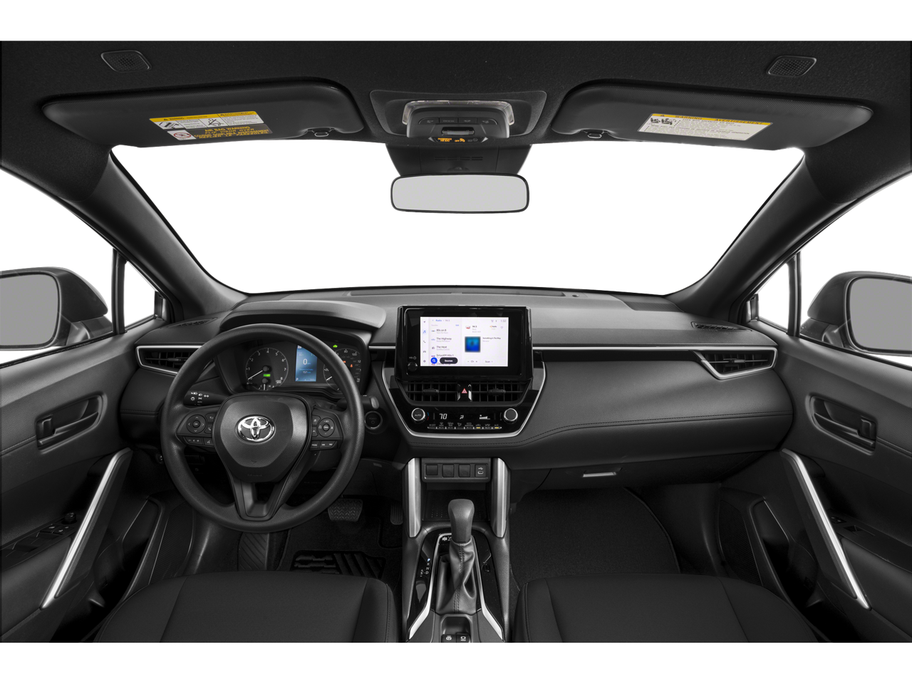 Celestite 2023 Toyota Corolla Cross Hybrid S AWD eCVT 2.0L I4 PDI Hybrid DOHC 16V LEV3-SULEV30 150hp 2.0L I4 PDI Hybrid DOHC 16V LEV3-SULEV30 150hp. This vehicle comes with the following features and options : 2.0L I4 PDI Hybrid DOHC 16V LEV3-SULEV30 150hp, 4-Wheel Disc Brakes, 6 Speakers, ABS brakes, Air Conditioning, Alloy wheels, AM/FM radio: SiriusXM, Auto High-beam Headlights, Automatic temperature control, Brake assist, Bumpers: body-color, Delay-off headlights, Driver door bin, Driver vanity mirror, Dual front impact airbags, Dual front side impact airbags, Electronic Stability Control, Emergency communication system: Safety Connect (up to 10-year trial subscription), Exterior Parking Camera Rear, Fabric Seat Trim, Four wheel independent suspension, Front anti-roll bar, Front Bucket Seats, Front Center Armrest, Front reading lights, Heated door mirrors, Illuminated entry, Knee airbag, Low tire pressure warning, Occupant sensing airbag, Outside temperature display, Overhead airbag, Panic alarm, Passenger door bin, Passenger vanity mirror, Power door mirrors, Power steering, Power windows, Radio data system, Radio: 8 Touch-Screen Display Audio, Rear anti-roll bar, Rear side impact airbag, Rear window defroster, Remote keyless entry, Speed control, Split folding rear seat, Spoiler, Steering wheel mounted audio controls, Tachometer, TBD Axle Ratio, Telescoping steering wheel, Tilt steering wheel, Traction control, Trip computer, Variably intermittent wipers, and Wheels: 17 Silver-Colored Alloy.