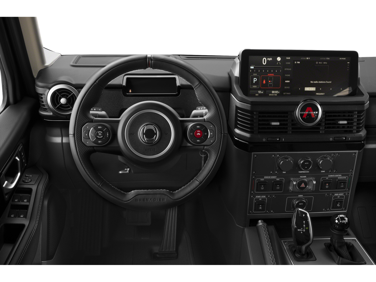 2024 INEOS Grenadier 4WD 8-Speed Automatic 3.0L I6 This vehicle comes with the following features and options : 18 Alloy Wheels, 4 Speakers, 4-Wheel Disc Brakes, ABS brakes, Air Conditioning, AM/FM radio, Anti-whiplash front head restraints, Auto High-beam Headlights, Automatic temperature control, Bodyside moldings, Bumpers: body-color, Driver door bin, Dual front impact airbags, Dual front side impact airbags, Electronic Stability Control, Exterior Parking Camera Rear, Front anti-roll bar, Front Bucket Seats, Front Center Armrest, Front reading lights, Heated door mirrors, Illuminated entry, Knee airbag, Leather Seat Trim, Leather steering wheel, Low tire pressure warning, Navigation System, Occupant sensing airbag, Outside temperature display, Overhead airbag, Overhead console, Panic alarm, Passenger door bin, Power door mirrors, Power steering, Power windows, Radio: Central Control System w/Navigation, Rear anti-roll bar, Rear fog lights, Rear window defroster, Rear window wiper, Remote keyless entry, Security system, Speed control, Speed-sensing steering, Split folding rear seat, Steering wheel mounted audio controls, Tachometer, TBD Axle Ratio, Telescoping steering wheel, Tilt steering wheel, Traction control, Trip computer, and Variably intermittent wipers.