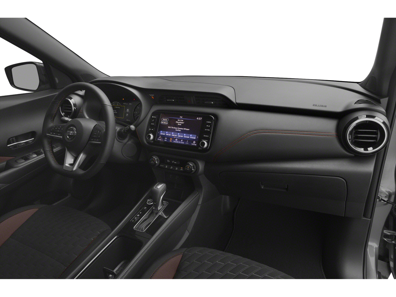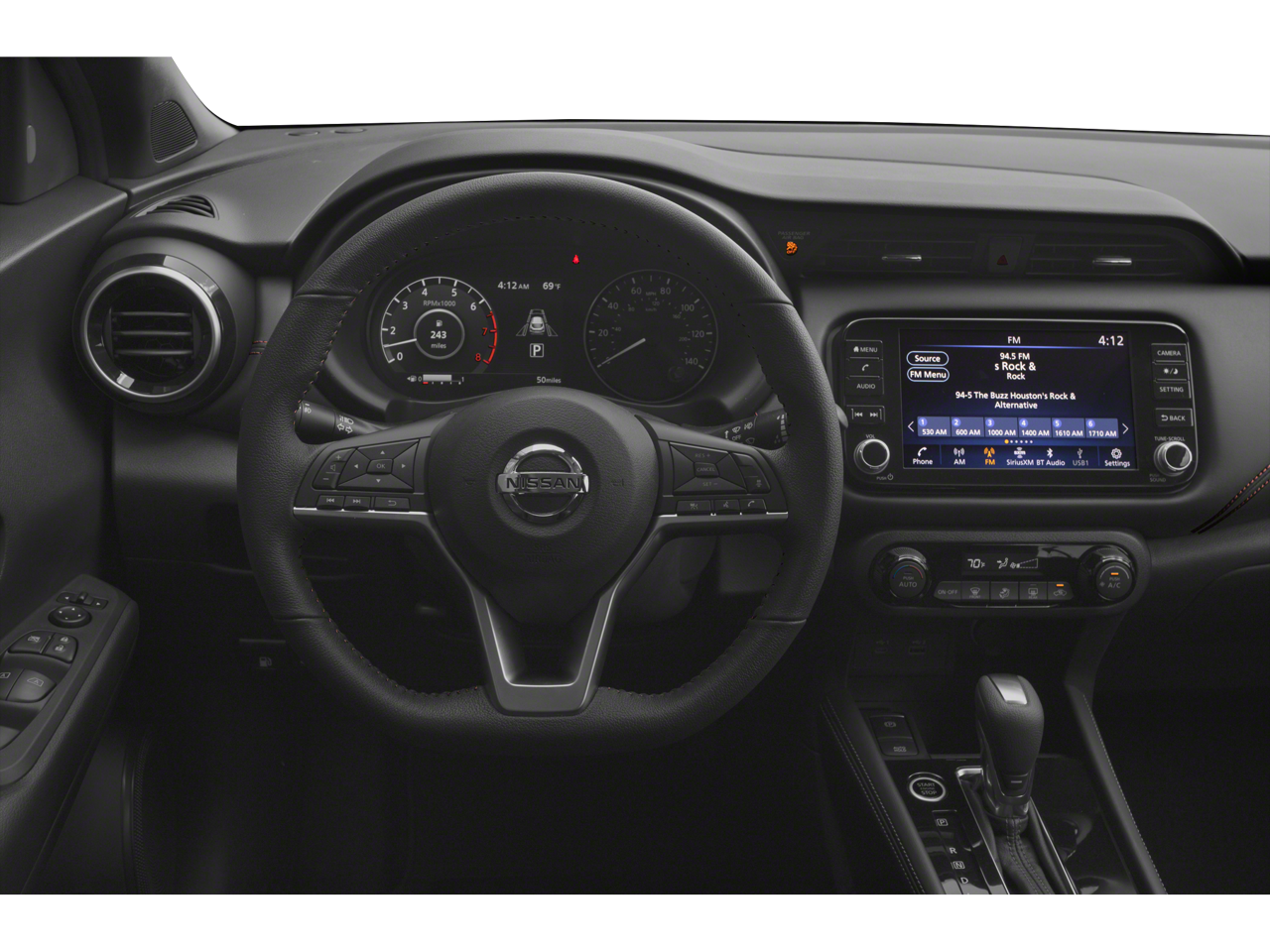 Gun Metallic 2021 Nissan Kicks SR FWD CVT with Xtronic 1.6L 4-Cylinder DOHC 16V 3.927 Axle Ratio, 4-Wheel Disc Brakes, 6 Speakers, ABS brakes, Air Conditioning, Alloy wheels, AM/FM radio: SiriusXM, Apple CarPlay/Android Auto, Auto High-beam Headlights, Auto-dimming Rear-View mirror, Automatic temperature control, Blind Spot Warning, Brake assist, Bumpers: body-color, Carpeted Floor Mats w/Cargo Mat, Compass, Delay-off headlights, Driver door bin, Driver vanity mirror, Dual front impact airbags, Dual front side impact airbags, Electronic Stability Control, Exterior Parking Camera Rear, Front anti-roll bar, Front Bucket Seats, Front Center Armrest, Front fog lights, Front reading lights, Front wheel independent suspension, Fully automatic headlights, Heated door mirrors, Illuminated entry, Knee airbag, Leather Shift Knob, Low tire pressure warning, Occupant sensing airbag, Outside temperature display, Overhead airbag, Panic alarm, Passenger door bin, Passenger vanity mirror, Power door mirrors, Power steering, Power windows, Radio data system, Radio: AM/FM Audio System, Rear Parking Sensors, Rear reading lights, Rear side impact airbag, Rear window defroster, Rear window wiper, Remote keyless entry, Roof rack: rails only, Speed control, Splash Guards Grain (4 Piece), Split folding rear seat, Sport steering wheel, SR Fabric Seat Trim, SR Rear Roof Spoiler, Steering wheel mounted audio controls, Tachometer, Telescoping steering wheel, Tilt steering wheel, Traction control, Trip computer, Turn signal indicator mirrors, Variably intermittent wipers, Wheels: 17 5-Hole Alloy.