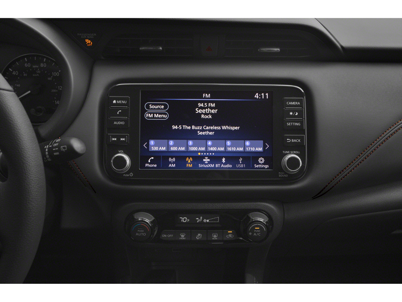 - Radio: AM/FM Audio System -inc: 8" color touchscreen display w/6 speakers, Bluetooth® hands-free phone system, streaming audio via Bluetooth®, Siri eyes free, audio and Bluetooth® steering wheel switches, 3 USB ports (2 charge only), type C USB (front), NissanConnect featuring Apple CarPlay, Android Auto, SiriusXM satellite radio w/advanced audio features and hands-free text messaging assistant