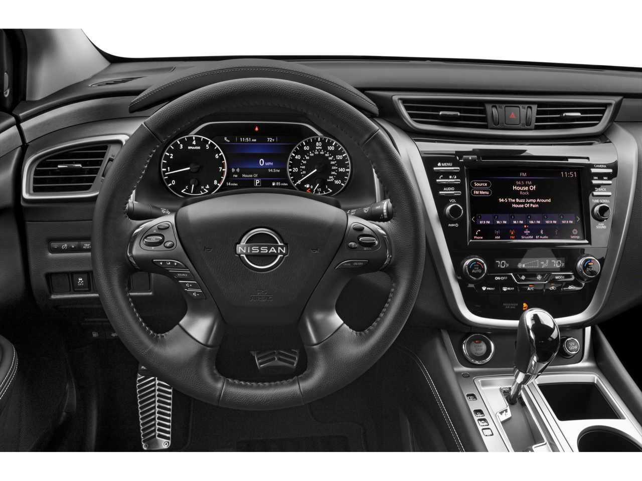 Boulder Gray Pearl 2024 Nissan Murano SV AWD CVT with Xtronic 3.5L V6 DOHC 24V CVT with Xtronic, AWD, 4-Wheel Disc Brakes, 4.667 Axle Ratio, 6 Speakers, ABS brakes, Air Conditioning, Alloy wheels, AM/FM radio: SiriusXM, AM/FM/CD/MP3/WMA Audio System, Auto High-beam Headlights, Auto-dimming Rear-View mirror, Automatic temperature control, Black Splash Guards, Blind Spot Warning, Brake assist, Bumpers: body-color, CD player, Child-Seat-Sensing Airbag, Compass, Delay-off headlights, Driver door bin, Driver vanity mirror, Dual front impact airbags, Dual front side impact airbags, Electronic Stability Control, Four wheel independent suspension, Front anti-roll bar, Front Bucket Seats, Front Center Armrest, Front dual zone A/C, Front fog lights, Front reading lights, Fully automatic headlights, Heated door mirrors, Heated Front Bucket Seats, Heated front seats, Illuminated entry, Illuminated Kickplates, Knee airbag, Leather steering wheel, Leatherette-Appointed Seat Trim, Low tire pressure warning, Midnight Edition Badge, Midnight Edition Carpeted Floor Mats, NissanConnect featuring Apple CarPlay and Android Auto, Occupant sensing airbag, Outside temperature display, Overhead airbag, Overhead console, Panic alarm, Passenger door bin, Passenger vanity mirror, Power door mirrors, Power driver seat, Power passenger seat, Power steering, Power windows, Radio data system, Rear anti-roll bar, Rear reading lights, Rear seat center armrest, Rear side impact airbag, Rear window defroster, Rear window wiper, Remote keyless entry, Security system, Speed control, Speed-sensing steering, Speed-Sensitive Wipers, Splash Guards & Illuminated Kick Plates, Split folding rear seat, Spoiler, Steering wheel mounted audio controls, SV Midnight Edition Package, Tachometer, Telescoping steering wheel, Tilt steering wheel, Traction control, Trip computer, Turn signal indicator mirrors, Variably intermittent wipers, Wheels: 18 Machined Aluminum-Alloy, Wheels: 20 Gloss Black Aluminum Alloy, CVT with Xtronic, AWD.