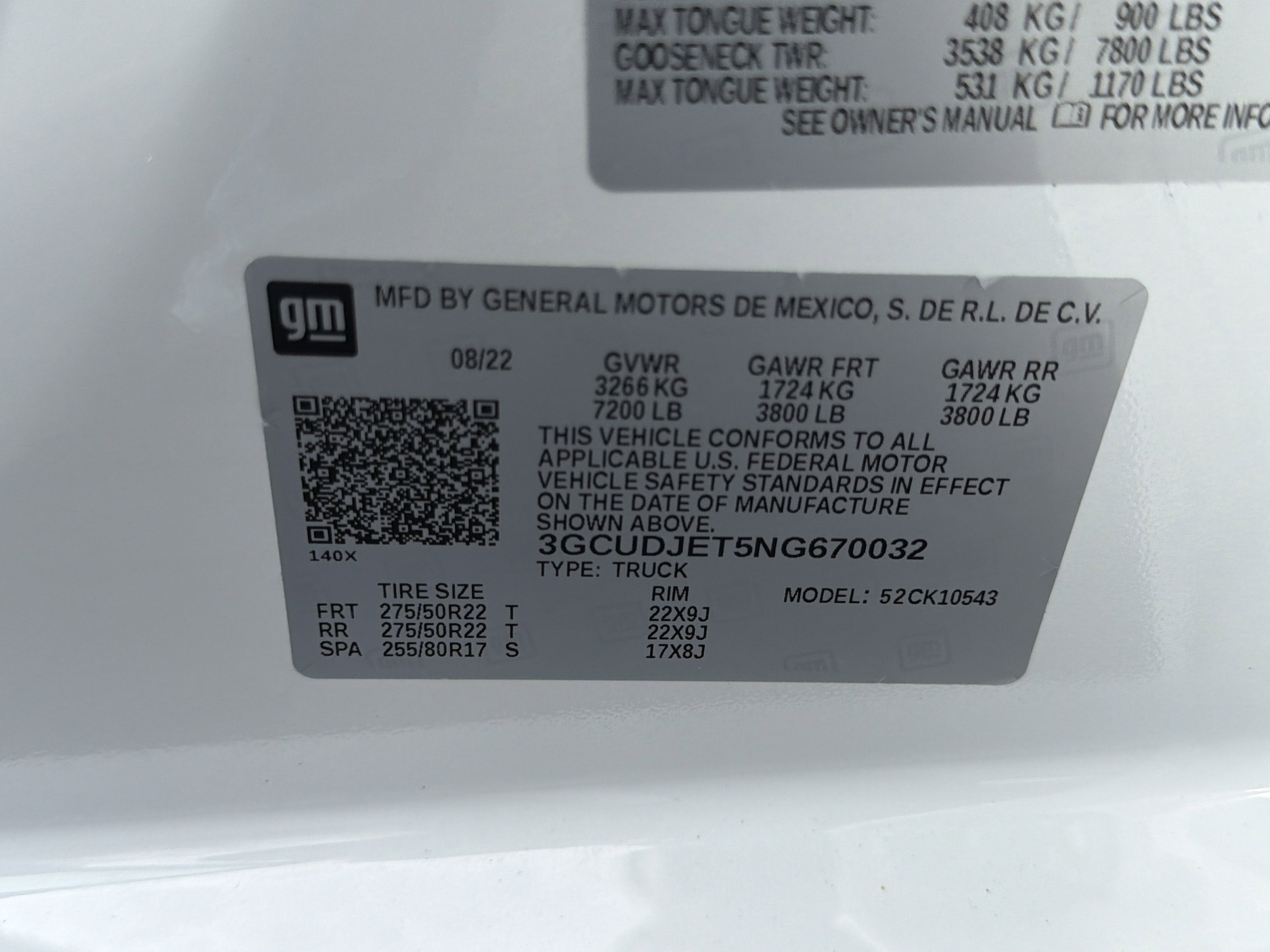 - Front Tire Size: 275/60R20SL
