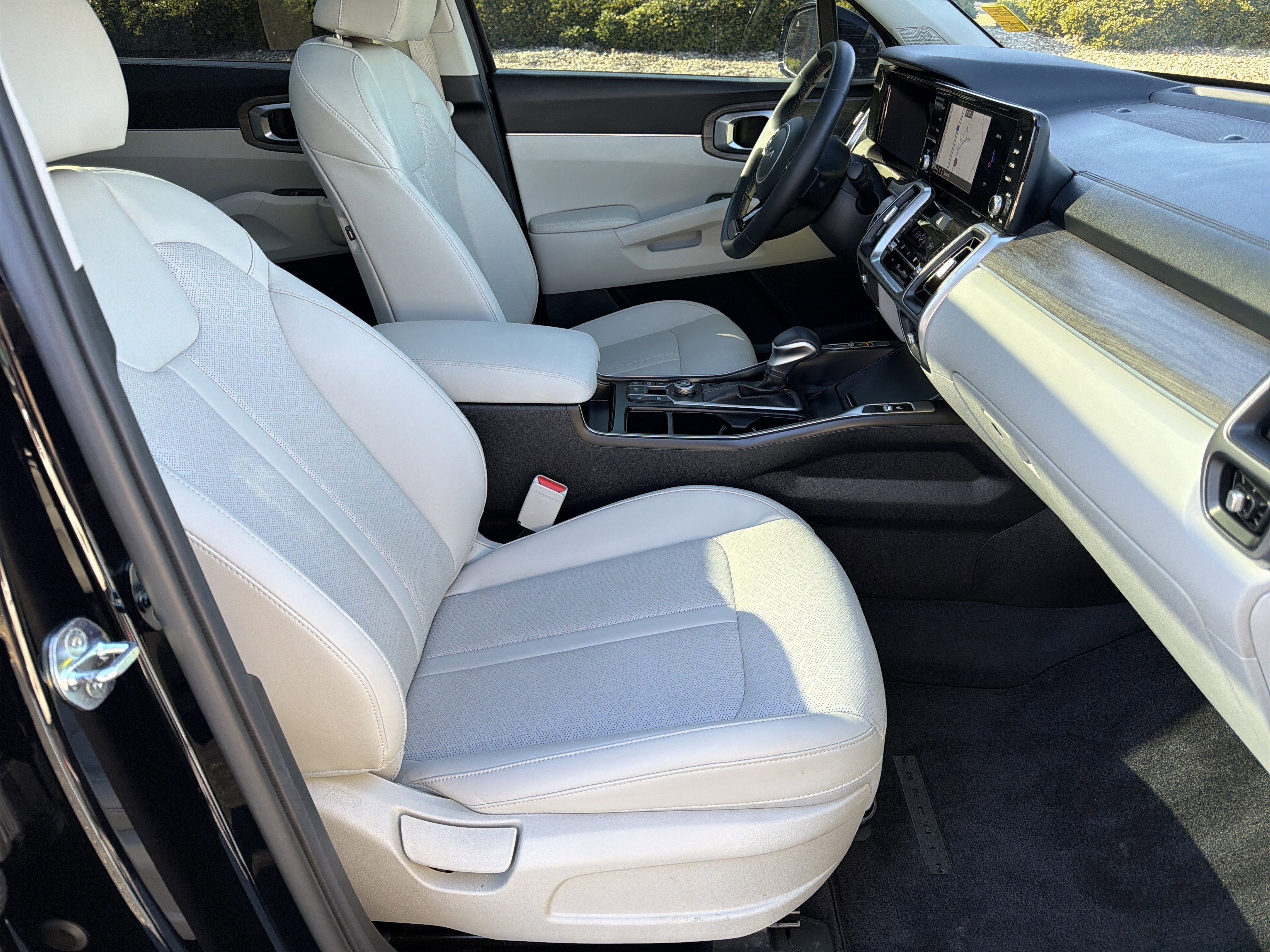 CARFAX One-Owner. 22/29 City/Highway MPGEbony Black 2022 Kia Sorento EX FWD 8-Speed DCT 2.5L I4 DGI Turbocharged DOHC 16V LEV3-ULEV70 281hp Sorento EX, 4D Sport Utility, 2.5L I4 DGI Turbocharged DOHC 16V LEV3-ULEV70 281hp, 8-Speed DCT, FWD, Ebony Black, Grey Artificial Leather, 3rd row seats: split-bench, 4-Wheel Disc Brakes, 6 Speakers, ABS brakes, Air Conditioning, Alloy wheels, AM/FM radio: SiriusXM, Apple CarPlay & Android Auto, Auto High-beam Headlights, Automatic temperature control, Brake assist, Bumper Applique Texture, Bumpers: body-color, Carpeted Floor Mats, Delay-off headlights, Driver door bin, Driver vanity mirror, Dual front impact airbags, Dual front side impact airbags, Electronic Stability Control, Emergency communication system: UVO Link, Exterior Parking Camera Rear, Four wheel independent suspension, Front anti-roll bar, Front Bucket Seats, Front Center Armrest, Front dual zone A/C, Front fog lights, Front reading lights, Fully automatic headlights, Heated door mirrors, Heated Front Bucket Seats, Heated front seats, Illuminated entry, Knee airbag, Leather Shift Knob, Leather steering wheel, LED Interior Lighting, Low tire pressure warning, Navigation System, Occupant sensing airbag, Outside temperature display, Overhead airbag, Overhead console, Panic alarm, Panoramic Sunroof Package, Passenger door bin, Passenger vanity mirror, Power door mirrors, Power driver seat, Power Liftgate, Power steering, Power Sunroof w/Power Sunshade, Power windows, Radio data system, Radio: AM/FM Audio System, Rear air conditioning, Rear anti-roll bar, Rear reading lights, Rear window defroster, Rear window wiper, Remote keyless entry, Roof rack: rails only, Security system, Smart Key w/ Push Button and Remote Start, Speed control, Speed-sensing steering, Split folding rear seat, Spoiler, Steering wheel mounted audio controls, SynTex Artificial Leather Seat Trim, Tachometer, Telescoping steering wheel, Tilt steering wheel, Traction control, Trip computer, Turn signal indicator mirrors, Variably intermittent wipers, Wheels: 7.5J x 18 Machine-Finished Alloy.Chevrolet of Canton 250 Liberty Blvd Canton, Georgia 30114 678.212.1093.