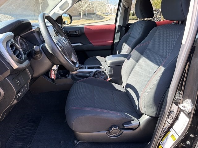 Certified. Midnight Black 2022 Toyota Tacoma SR5 RWD 6-Speed Automatic 2.7L SMPI DOHC No Dealer Fees, Warranty Included, One Owner, Clean Carfax History, Bought, Traded, and Maintained at Cherokee County Toyota, Tacoma SR5, 4D Double Cab, 2.7L SMPI DOHC, 6-Speed Automatic, RWD, Midnight Black, Black/Red Cloth, 6 Speakers, ABS brakes, Air Conditioning, AM/FM radio: SiriusXM, Anti-whiplash front head restraints, Apple CarPlay/Android Auto, Auto High-beam Headlights, Axle Ratio: 4.30, Bar Gray Ring Chrome Front Grille, Brake assist, Bumpers: body-color, Chrome Rear Bumper, Daytime Running Lamps, Driver door bin, Dual front impact airbags, Dual front side impact airbags, Electronic Stability Control, Emergency communication system: Safety Connect with 1-year trial, Exterior Parking Camera Rear, Fabric Seat Trim (FC), Front anti-roll bar, Front Bucket Seats, Front Center Armrest, Front Fog Lamps, Front reading lights, Front Seats, Front wheel independent suspension, Illuminated entry, Knee airbag, Low tire pressure warning, Occupant sensing airbag, Outside temperature display, Overhead airbag, Overhead console, Panic alarm, Passenger door bin, Power door mirrors, Power steering, Power windows, Radio: AM/FM Radio, Rear step bumper, Remote keyless entry, Remote Keyless Entry System, Speed control, Speed-sensing steering, Split folding rear seat, SR5 Package, Steering wheel mounted audio controls, Tachometer, Telescoping steering wheel, Tilt steering wheel, Traction control, Trip computer, Variably intermittent wipers, Wheels: 16 x 7J Style Steel Disc. This vehicle comes with the following features and options : SR5 Package (Bar Gray Ring Chrome Front Grille, Chrome Rear Bumper, Daytime Running Lamps, Front Fog Lamps, and Remote Keyless Entry System), Tacoma SR5, CHEROKEE COUNTY TOYOTA CERTIFIED Certified, 4D Double Cab, 2.7L SMPI DOHC, 6-Speed Automatic, RWD, Midnight Black, Black/Red Cloth, 6 Speakers, ABS brakes, Air Conditioning, AM/FM radio: SiriusXM, Anti-whiplash front head restraints, Apple CarPlay/Android Auto, Auto High-beam Headlights, Axle Ratio: 4.30, Brake assist, Bumpers: body-color, Driver door bin, Dual front impact airbags, Dual front side impact airbags, Electronic Stability Control, Emergency communication system: Safety Connect with 1-year trial, Exterior Parking Camera Rear, Fabric Seat Trim (FC), Front anti-roll bar, Front Bucket Seats, Front Center Armrest, Front reading lights, Front Seats, Front wheel independent suspension, Illuminated entry, Knee airbag, Low tire pressure warning, Occupant sensing airbag, Outside temperature display, Overhead airbag, Overhead console, Panic alarm, Passenger door bin, Power door mirrors, Power steering, Power windows, Radio: AM/FM Radio, Rear step bumper, Remote keyless entry, Speed control, Speed-sensing steering, Split folding rear seat, Steering wheel mounted audio controls, Tachometer, Telescoping steering wheel, Tilt steering wheel, Traction control, Trip computer, Variably intermittent wipers, Wheels: 16 x 7J Style Steel Disc, and Front fog lights.