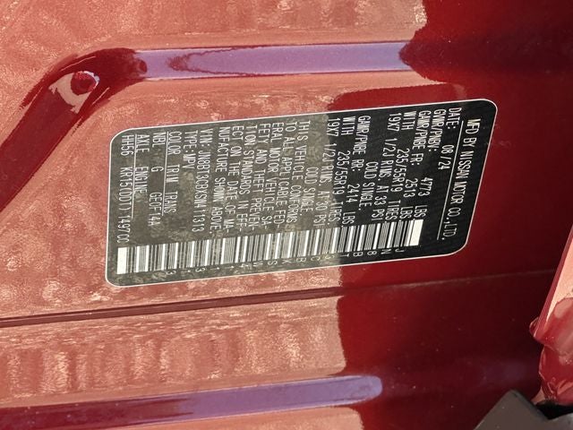 Scarlet 2025 Nissan Rogue SL AWD CVT with Xtronic 1.5L DOHC **ONE OWNER**, Rogue SL, Nissan Certified Certified, 4D Sport Utility, 1.5L DOHC, CVT with Xtronic, AWD, Scarlet, Charcoal Leather, Android Auto and Apple CarPlay, Auto-dimming Rear-View mirror, Garage door transmitter: myQ Connected Garage, Heated door mirrors, Heated Front Bucket Seats with 8-Way Power Driver Seat and 4-Way Power Passenger Seat, Heated steering wheel, Navigation system: NissanConnect with Navigation and Services, Power door mirrors, Power driver seat, Power Liftgate, Remote keyless entry, Security system, Turn signal indicator mirrors, Wheels: 19 Dark Painted Machine Finished Alloy, 4-Wheel Disc Brakes, 6 Speakers, ABS brakes, Air Conditioning, Alloy wheels, AM/FM radio: SiriusXM with 360L, Auto High-beam Headlights, Automatic temperature control, Brake assist, Bumpers: body-color, Chrome Rear Bumper Protector, Delay-off headlights, Driver door bin, Driver vanity mirror, Dual front impact airbags, Dual front side impact airbags, Electronic Stability Control, Emergency communication system: NissanConnect Services, First Aid Kit, Floor Mats with 2-Piece Cargo Area Protector, Four wheel independent suspension, Front anti-roll bar, Front Bucket Seats, Front Center Armrest, Front dual zone A/C, Front reading lights, Fully automatic headlights, Illuminated entry, Knee airbag, Leather-Appointed Seat Trim, Low tire pressure warning, Occupant sensing airbag, Outside temperature display, Overhead airbag, Overhead console, Panic alarm, Passenger door bin, Passenger vanity mirror, Power passenger seat, Power steering, Power windows, Premium Paint, Radio data system, Radio: NissanConnect with Navigation and 6 Speakers, Rear anti-roll bar, Rear seat center armrest, Rear side impact airbag, Rear window defroster, Rear window wiper, Speed control, Speed-sensing steering, Speed-Sensitive Wipers, Split folding rear seat, Spoiler, Steering wheel mounted audio controls, Tachometer, Telescoping steering wheel, Tilt steering wheel, Traction control, Trip computer, USB Charging Cable Set - Nissan, Variably intermittent wipers, Rogue SL, 4D Sport Utility, 1.5L DOHC, CVT with Xtronic, AWD, Scarlet, Charcoal Leather, Android Auto and Apple CarPlay, Auto-dimming Rear-View mirror, Garage door transmitter: myQ Connected Garage, Heated door mirrors, Heated Front Bucket Seats with 8-Way Power Driver Seat and 4-Way Power Passenger Seat, Heated steering wheel, Navigation system: NissanConnect with Navigation and Services, Power door mirrors, Power driver seat, Power Liftgate, Remote keyless entry, Security system, Turn signal indicator mirrors, Wheels: 19 Dark Painted Machine Finished Alloy.