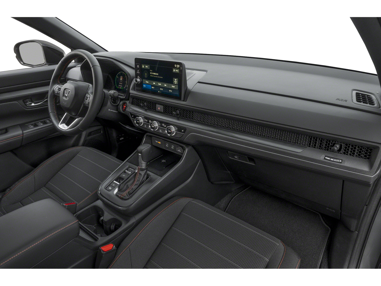 2026 Honda CR-V Hybrid Sport FWD eCVT 2.0L I4 DOHC 16V 2.0L I4 DOHC 16V. This vehicle comes with the following features and options : 2.0L I4 DOHC 16V, 4-Wheel Disc Brakes, 6 Speakers, ABS brakes, Adaptive Cruise Control: Adaptive Cruise Control (ACC) with Low-Speed Follow, Air Conditioning, Alloy wheels, AM/FM radio, Apple CarPlay/Android Auto, Auto High-beam Headlights, Automatic temperature control, Blind Spot Information (BSI) System warning, Brake assist, Bumpers: body-color, Cloth Seat Trim, Compass, Delay-off headlights, Driver door bin, Driver vanity mirror, Dual front impact airbags, Dual front side impact airbags, Electronic Stability Control, Exterior Parking Camera Rear, Four wheel independent suspension, Front anti-roll bar, Front Bucket Seats, Front Center Armrest, Front dual zone A/C, Front reading lights, Fully automatic headlights, Heated door mirrors, Heated Front Bucket Seats, Heated front seats, Illuminated entry, Knee airbag, Leather Shift Knob, Leather steering wheel, Low tire pressure warning, Occupant sensing airbag, Outside temperature display, Overhead airbag, Overhead console, Panic alarm, Passenger door bin, Passenger vanity mirror, Power door mirrors, Power driver seat, Power moonroof, Power steering, Power windows, Radio data system, Radio: 240-Watt AM/FM Audio System, Rear anti-roll bar, Rear reading lights, Rear seat center armrest, Rear side impact airbag, Rear window defroster, Rear window wiper, Remote keyless entry, Security system, Speed control, Speed-sensing steering, Speed-Sensitive Wipers, Split folding rear seat, Spoiler, Steering wheel mounted audio controls, Telescoping steering wheel, Tilt steering wheel, Traction control, Trip computer, Turn signal indicator mirrors, Variably intermittent wipers, and Wheels: 18 Berlina Black.